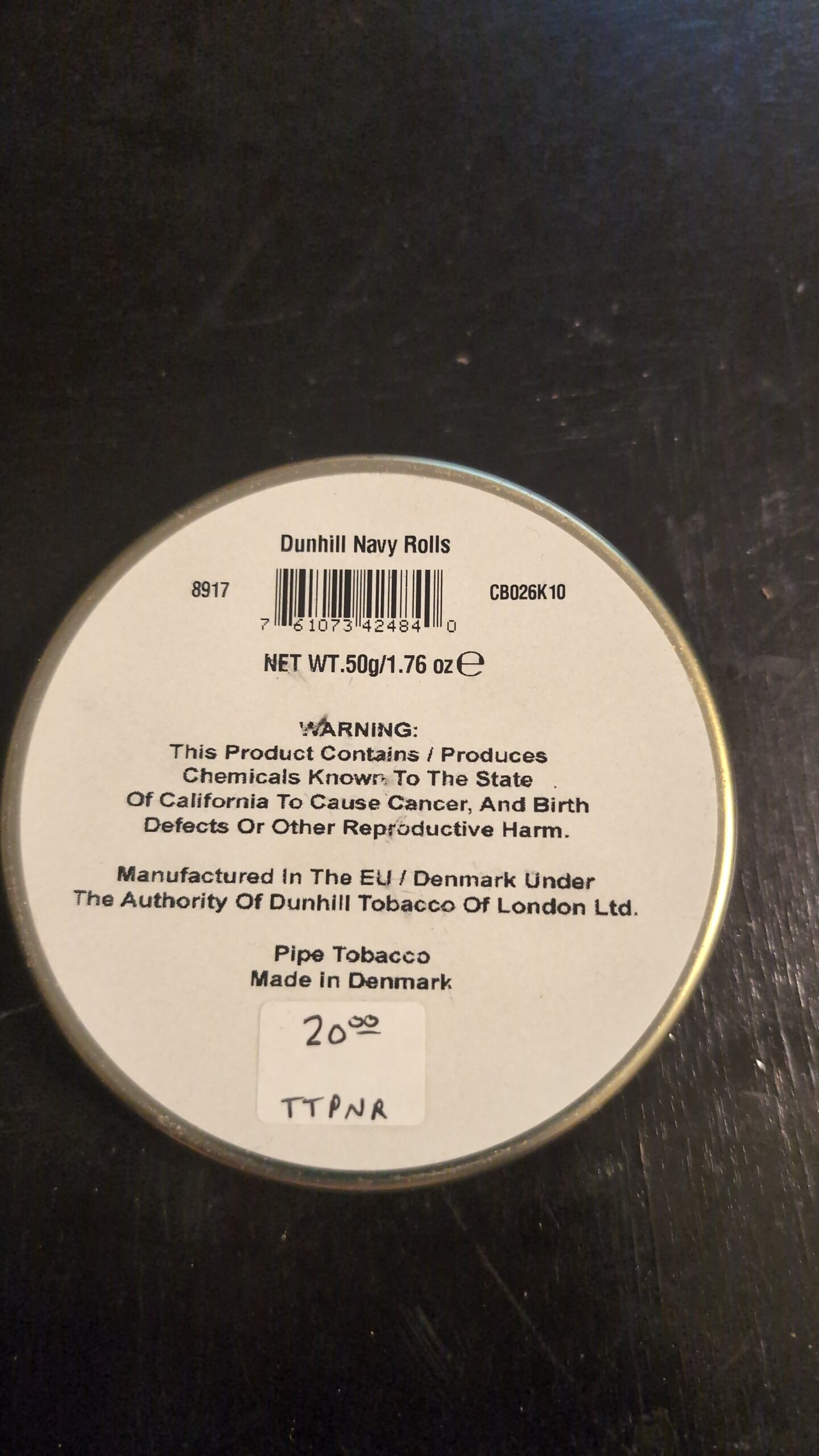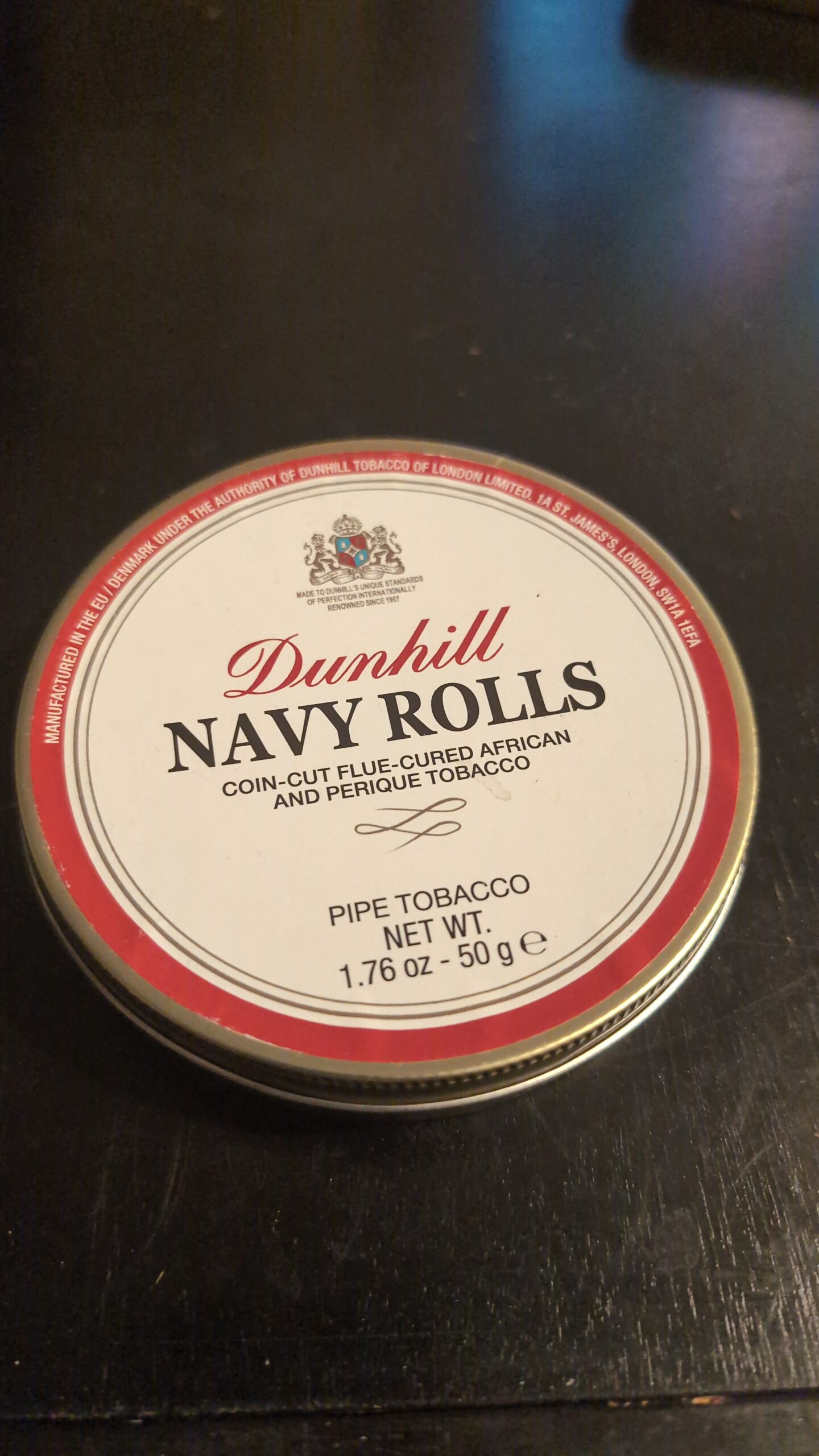 One sealed tin of Dunhill Navy Rolls unknown vintage . No reserve . Happy Bidding