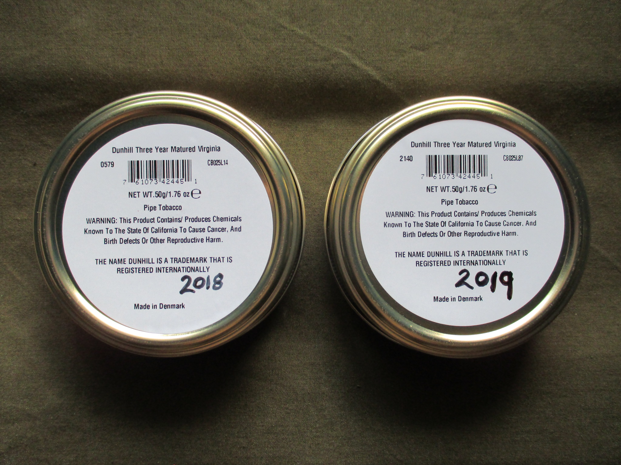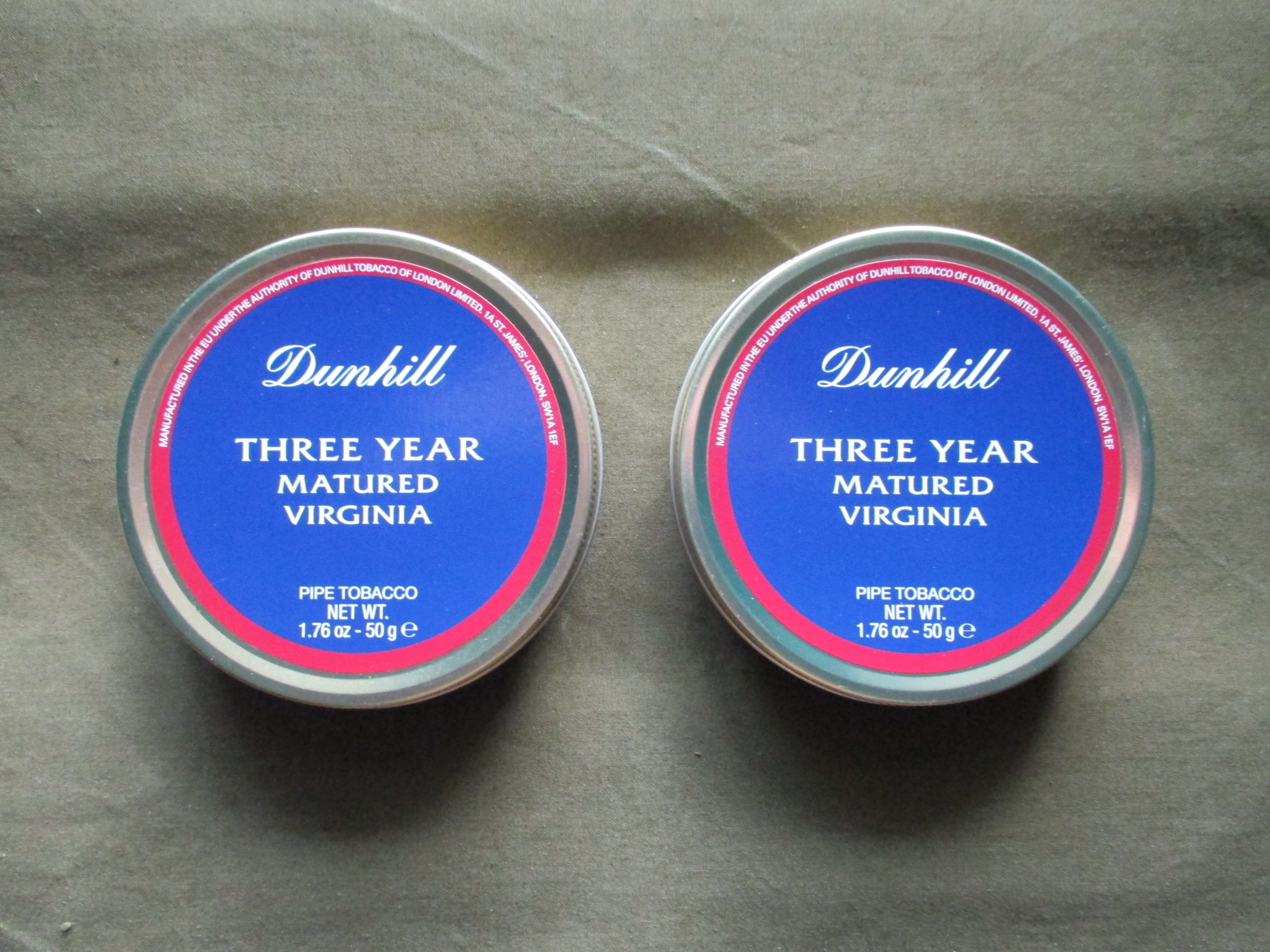 2 Clean sealed tins of Dunhill Three Year Matured Virginia