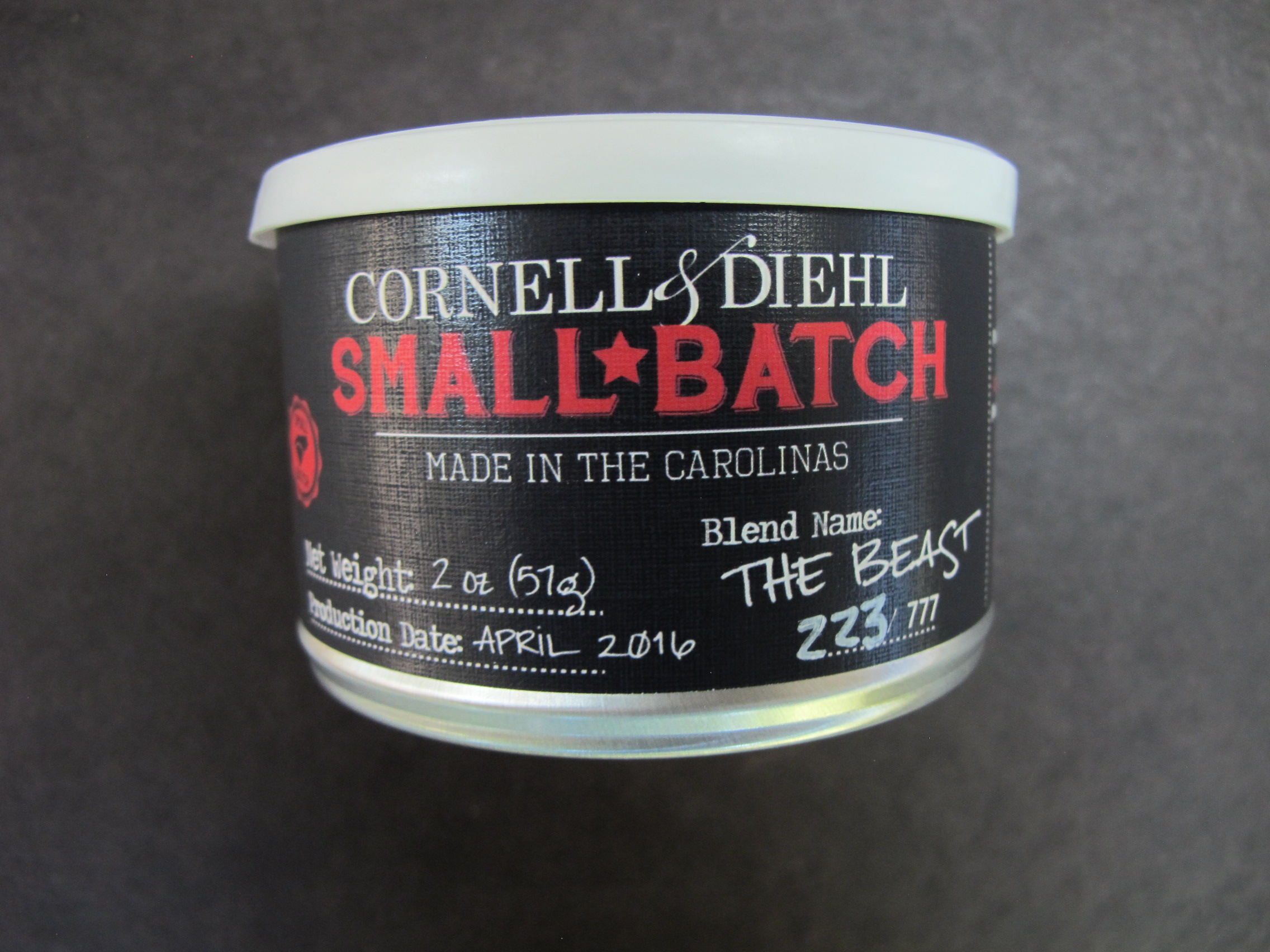 Here's a tin of Cornell & Diehl's Small Batch The BEAST, from the original run in 2016. #223 out of 777 tins produced. Excellent condition.