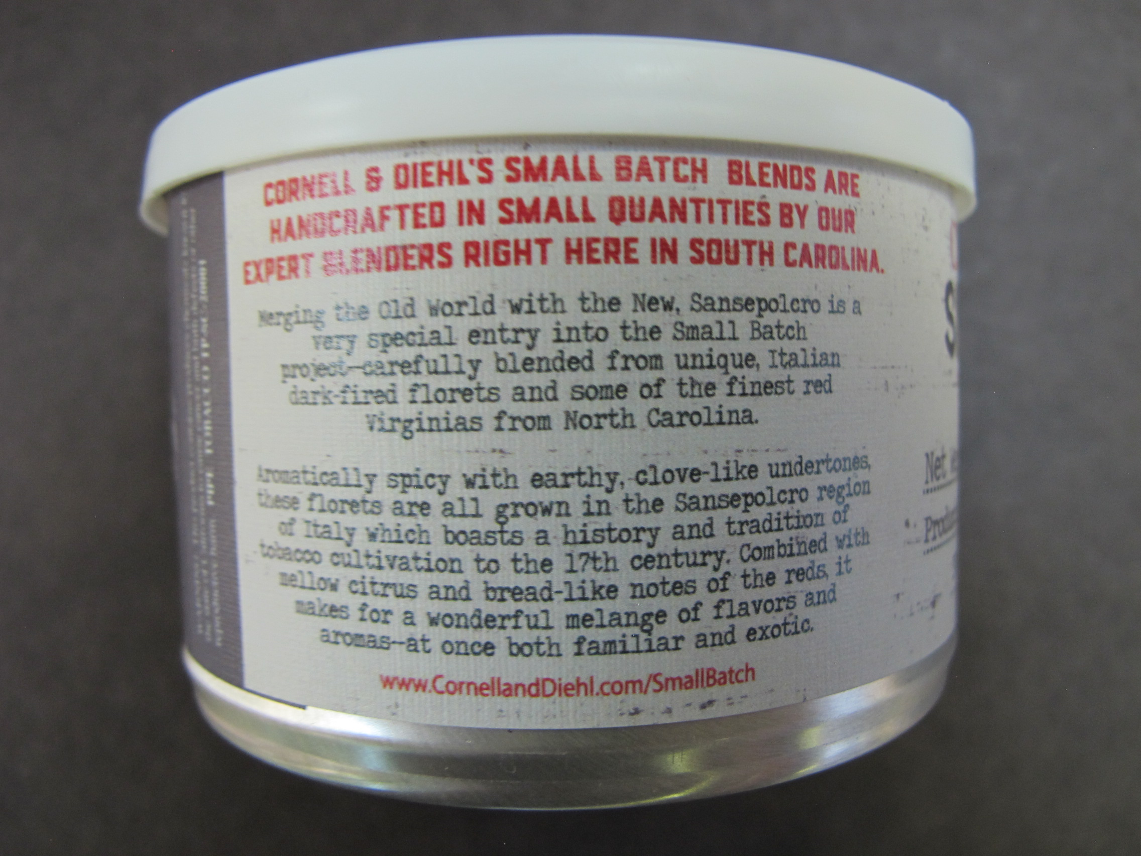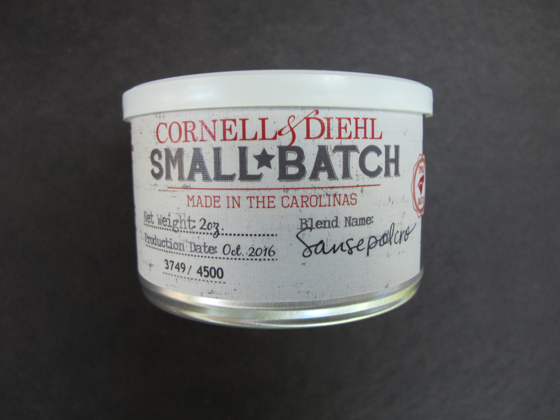 Here's a tin of Cornell & Diehl's small batch "Sansepolcro", from the original release in 2016. Tin is #3749 out of 4500 tins produced.