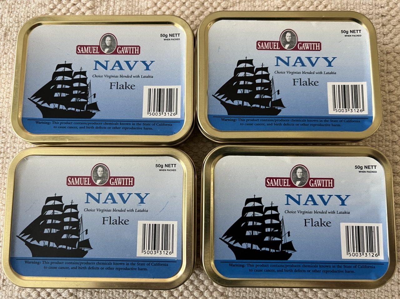 This auction is for four (4) 2017 Samuel Gawith Navy Flake 50g Tins.