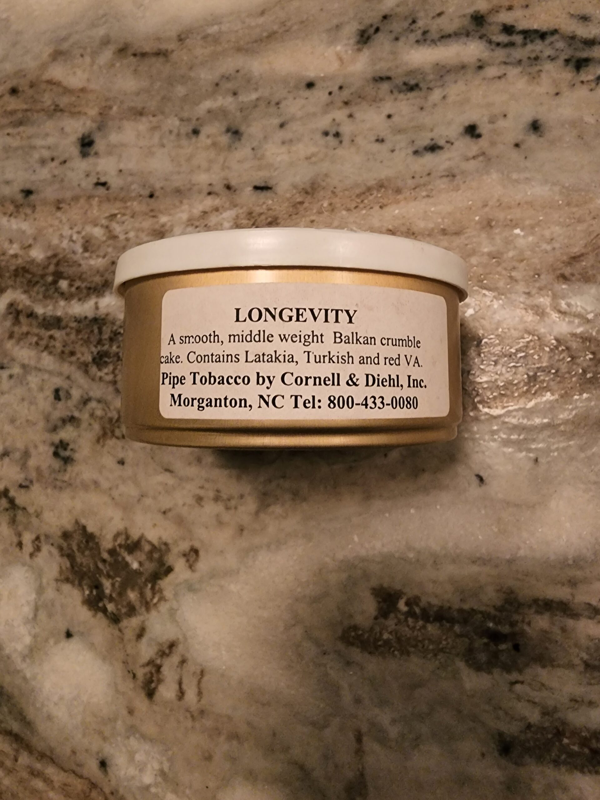 really nice vintage tin of C&D's Longevity from 2002 A smooth, middle weight Balkan crumble cake with Syrian Latakia, Turkish and red Virginia ribbon.