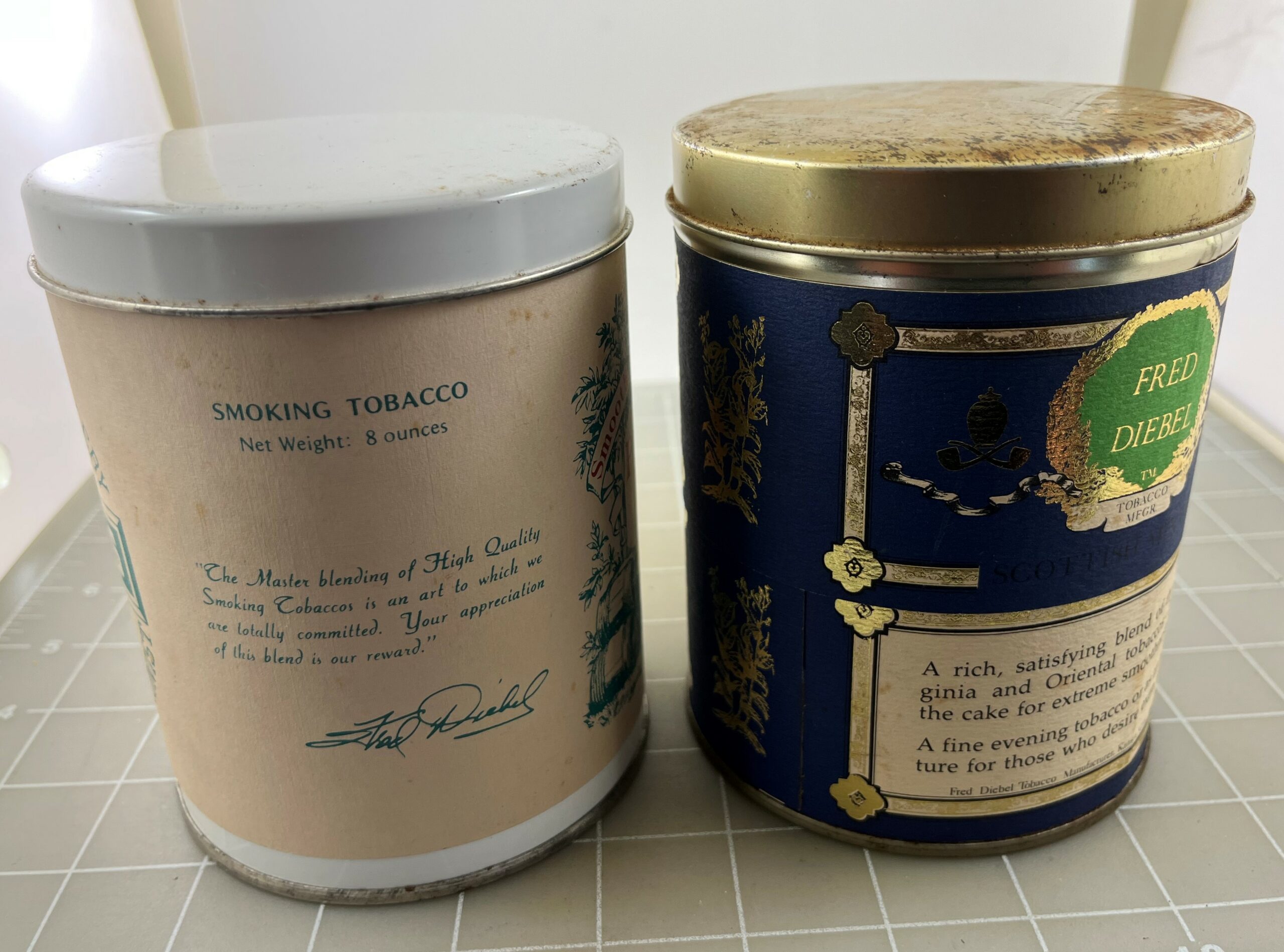 Lot of 2 Vintage RARE Fred Diebel's 8 oz. Tins