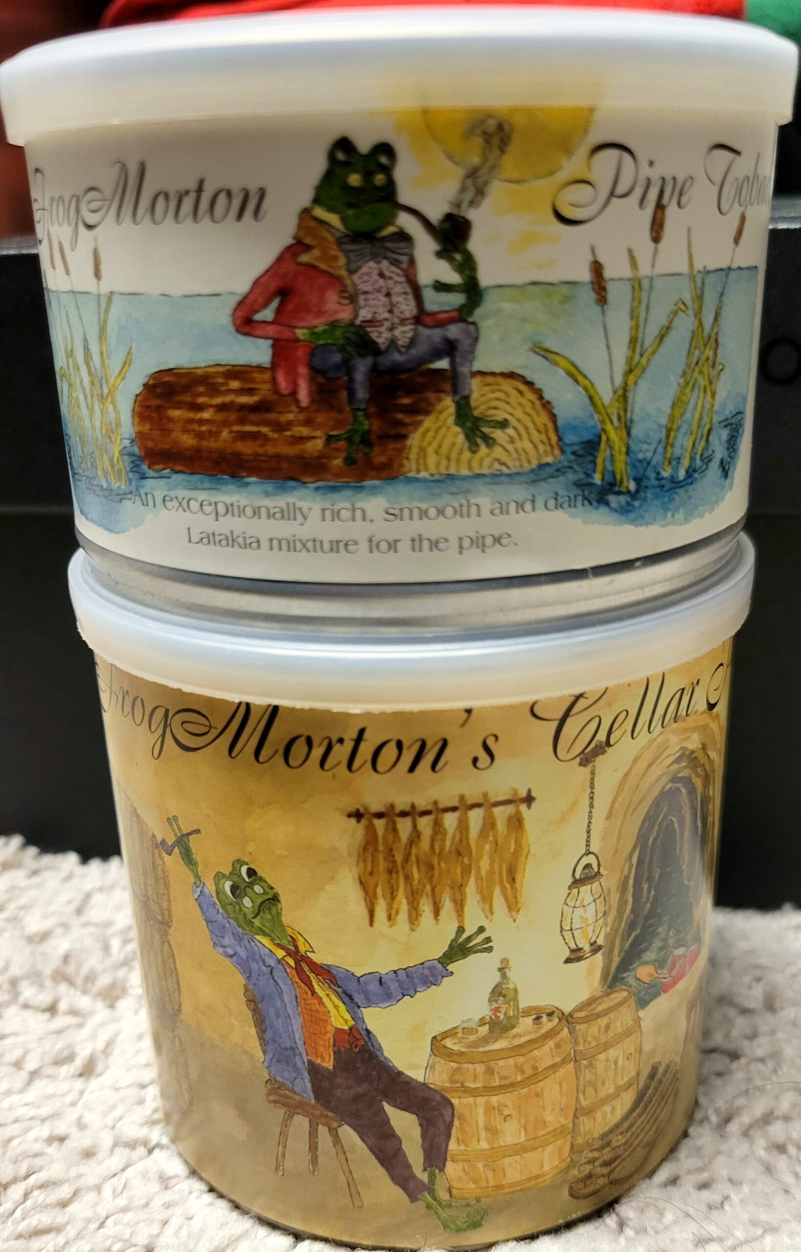 Lot of 2 tins has one 50g tin of the Frog Morton blend and one 100g tin of Frog Morton's Cellar blend. Aged from 2016 in temperature controlled environment. 2 sealed tins.
