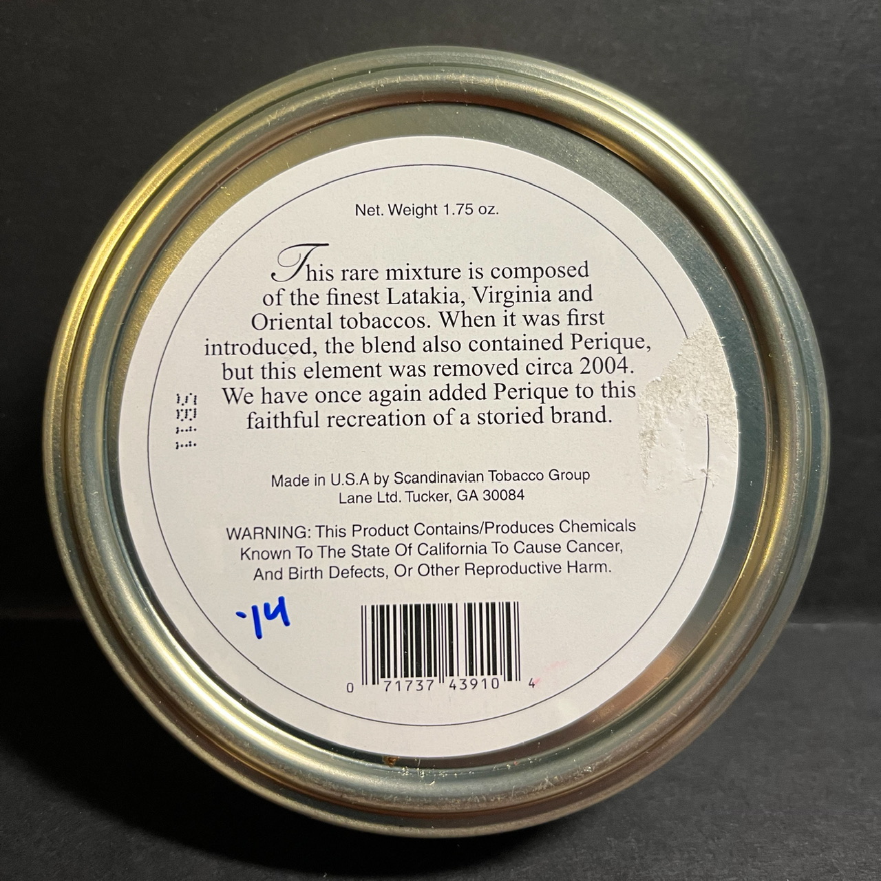 The rarest, most costly mixture composed of the finest Virginia, Mahalla, Dubac and Mountain Leaf Latakia. Recognized as the world's most outstanding smoking mixture.