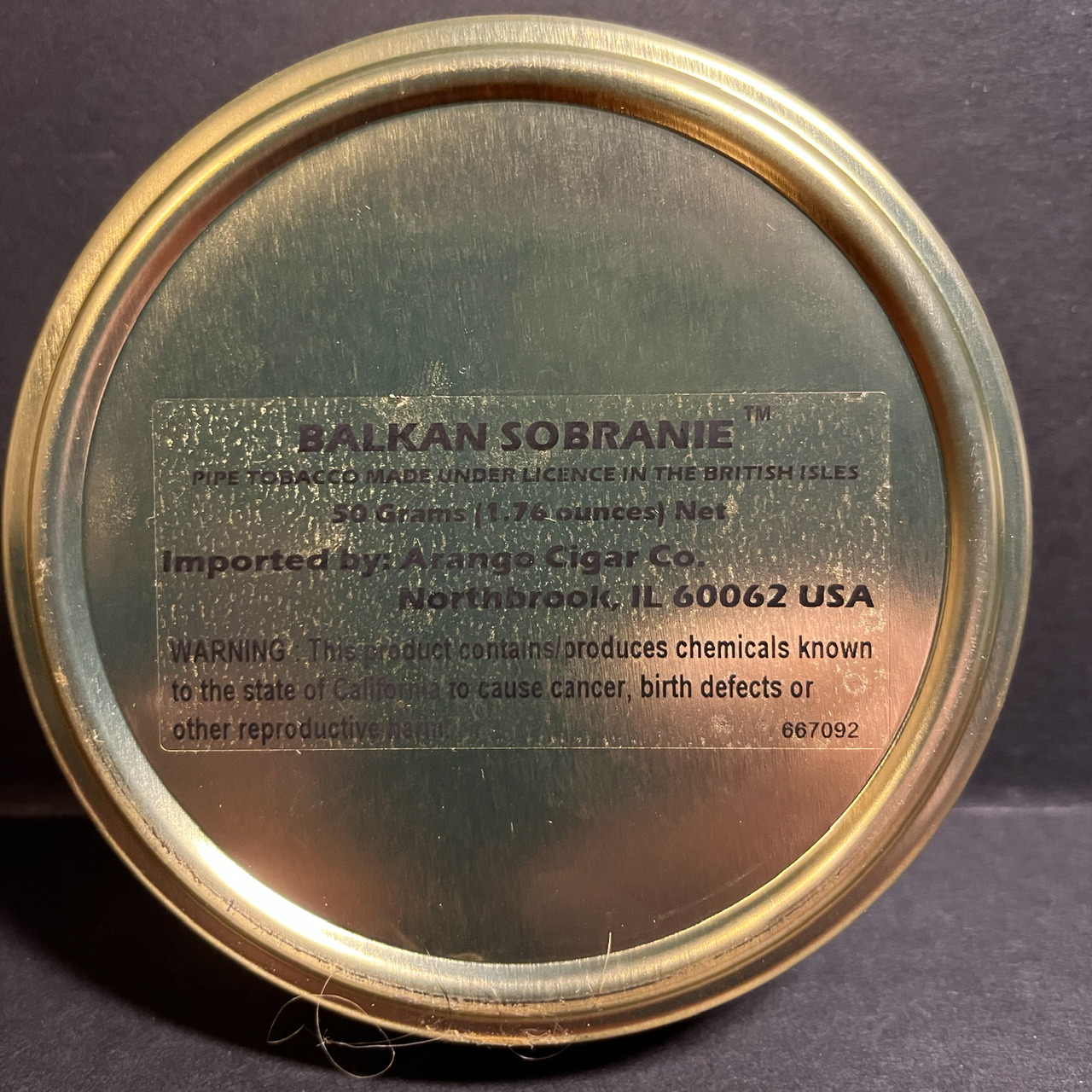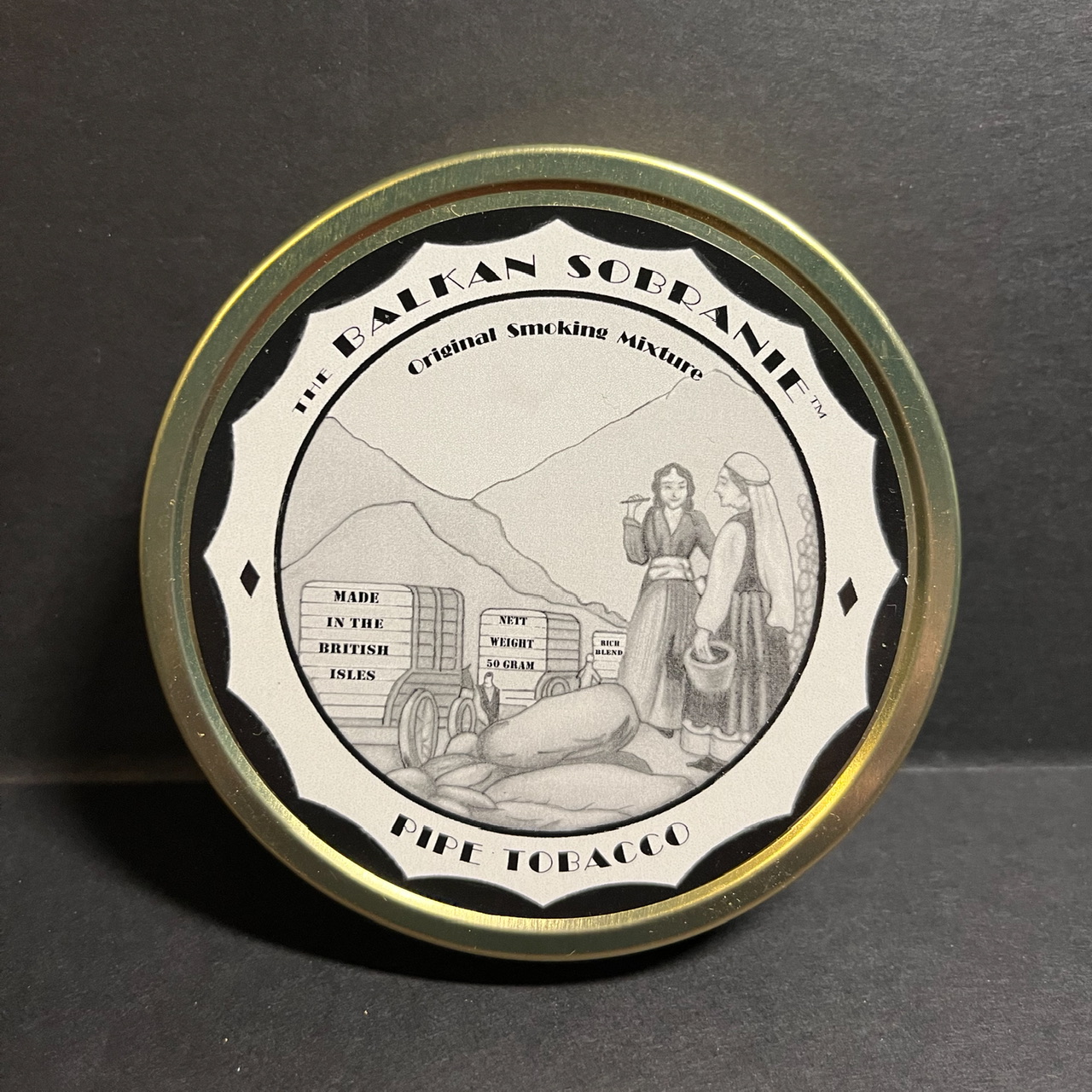 The excellent J.F. Germain & Son re-release of Sobranie of London’s historic Balkan Sobranie blend. Tin has no shake and seal appears intact.