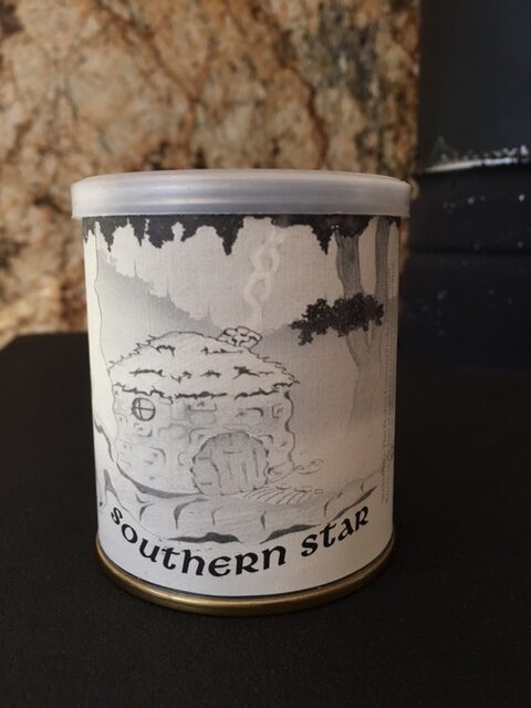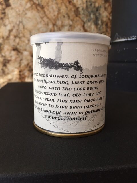 50g tin. Hobbit themed. GL Pease limited production and offered only at the 2000 NASPC Pipe and Tobacco Show.