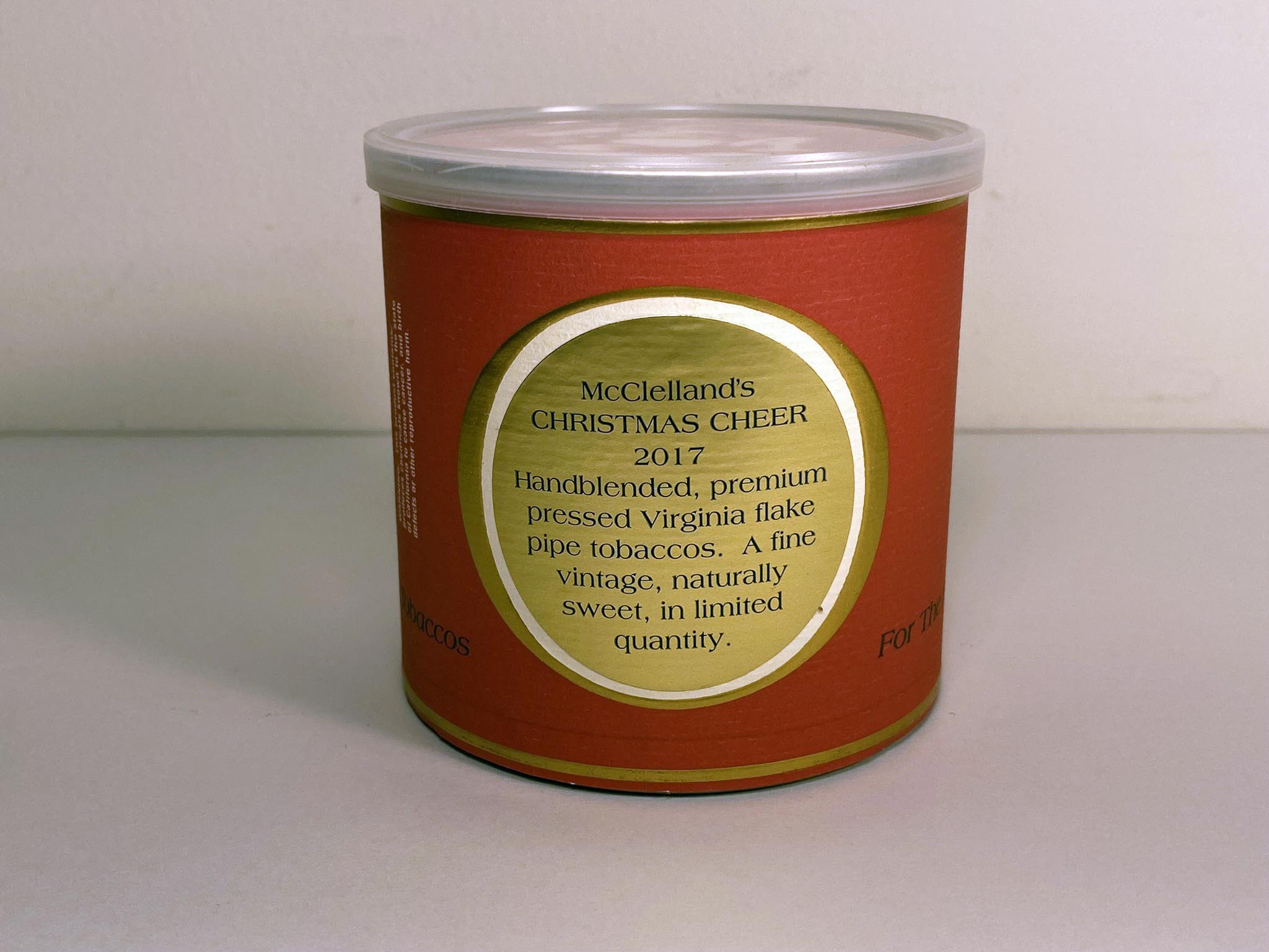Notes: From tin insert: We are proud to offer our 2017 Christmas Cheer pipe tobacco, an exceptionally fine vintage tobacco, hand blended and aged in pressed cakes to develop natural mellowness. This 2017 blend is made with a special selection of rich, deep red, flue-cured Virginia from an excellent 2013 crop grown near New Hope, N.C. Superb leaf picked at peak ripeness, it is naturally sweet, rich in oils. It should age with distinction. Each buying season, we look for tobaccos of exceptional quality and distinctive character. In various combinations, their flavors, aromas, textures, contribute to the overall excellence of all our products.