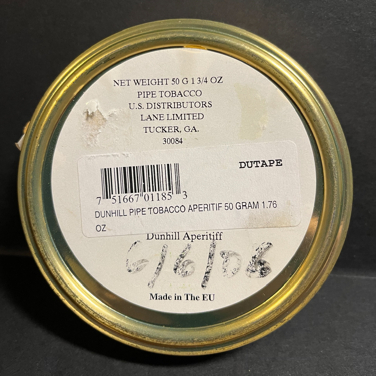 A well-aged, 50g tin of Dunhill Aperitif. Tin has light shake, seal appears intact.