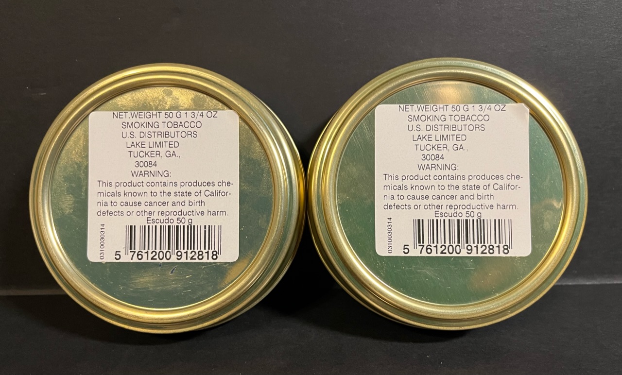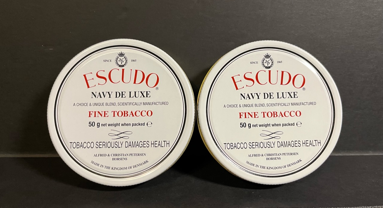 A&C Petersen Denmark-produced painted tin of Escudo in pristine condition. Tins have very slight shake and seal appears intact. You are bidding on two (2) 50g tins.
