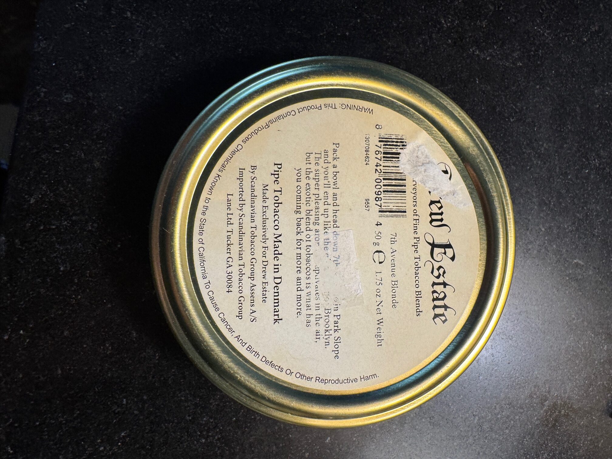 Drew Estate, 7th Avenue Blonde is a blend created by Nichoas Melillo. Burley. It's a ribbon blend of Cavendish, Oriental/Turkish and Virginia tobacco's. It's been out of production for many years and is highly prized. This unopened tin has been collection for many years.