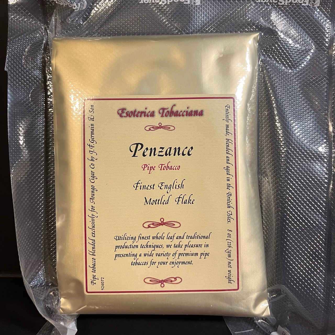 Esoterica Penzance is another blend that needs no introduction. This factory sealed, 8oz bag was purchased in 2015 and was vacuum sealed shortly after purchasing. Stored in a temperature and humidity controlled environment.