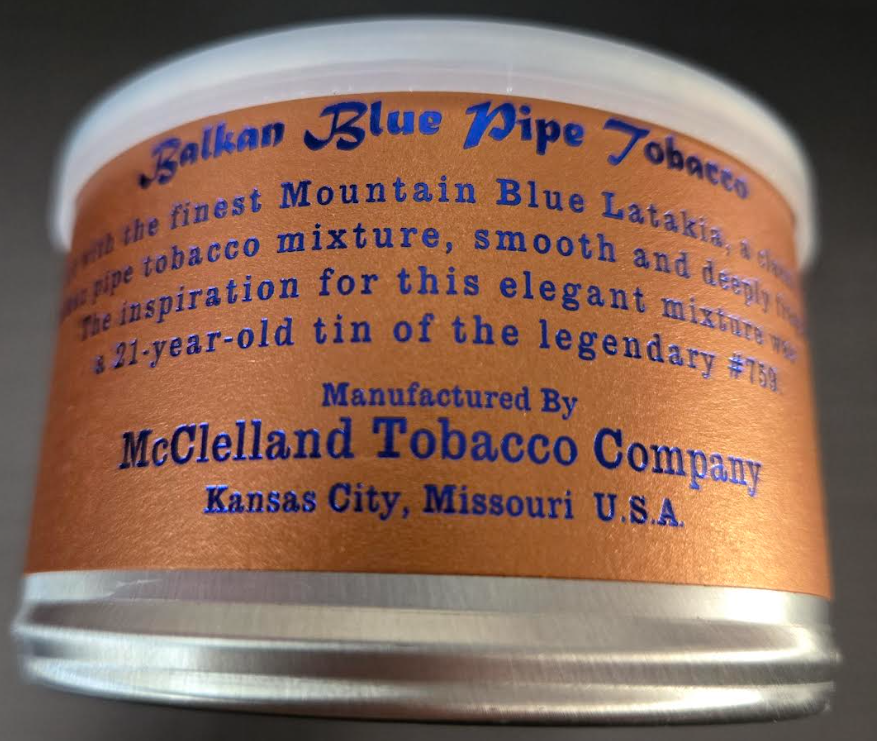 Perfectly stored and sealed 50g tin of 2017 Balkan Blue by McClelland. Tin is in mint as new condition.