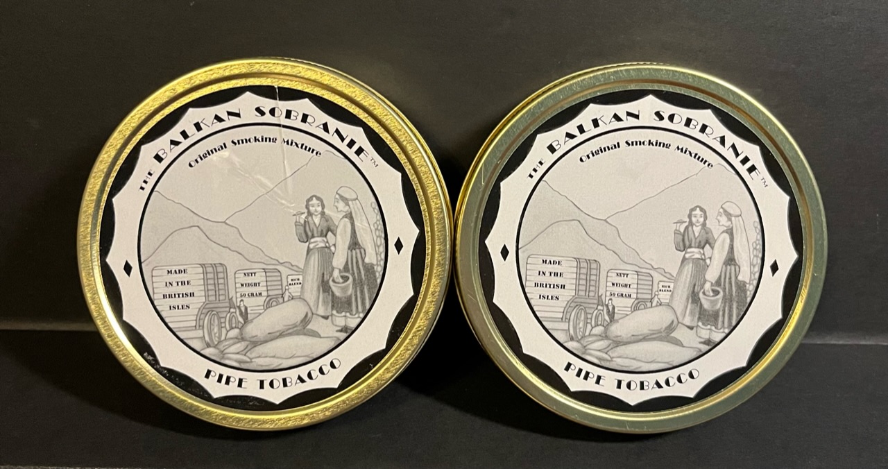 The excellent J.F. Germain & Son re-release of Sobranie of London’s historic Balkan Sobranie blend. Tins have no shake and seals appear intact. You are bidding on two (2) 50g tins.