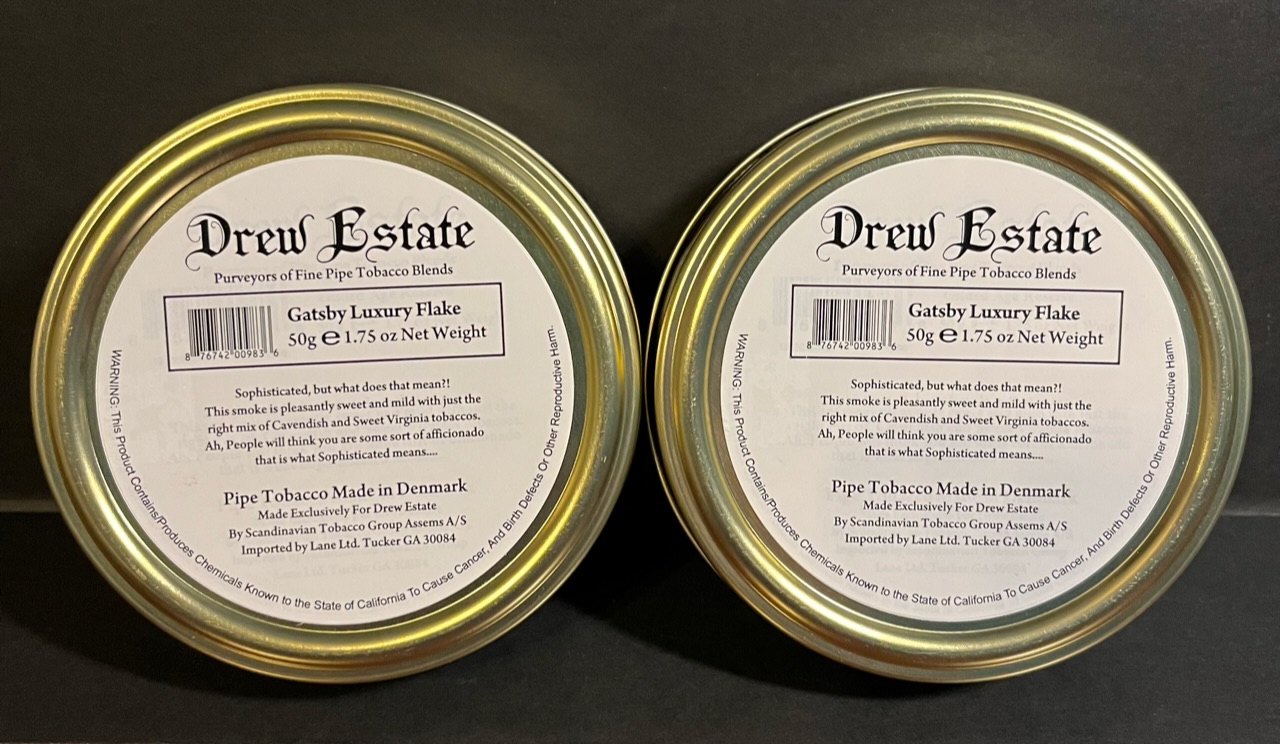 You are bidding on two (2) tins of Drew Estates Gatsby Luxury Flake. Tins have very slight shake and seals appear intact.